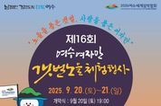 [인천광역신문] 관리자 기자 | 여수시는 오는 9월 20일부터 21일까지 이틀간 소라면 해넘이길 일원에서 ‘제16회 여수여자만갯벌노을체험행사’를 개최한다. 이번 행사는 여자만의 황홀한 석양과 갯벌 생태, 문화를 체험하며 가을 바다의 정취를 만끽할 수 있도록 준비됐다. 대표 체험 프로그램으로는 ▲대나무 망둥어 낚시 ▲바지락 캐기 ▲맨손 고기잡이 ▲복개도 보물찾기 등이 마련돼 아이들과 가족 단위 관람객이 직접 참여할 수 있다. 올해는 학생 사생대회와 청소년 댄스 페스티벌의 수상 인원을 확대하고 갯벌노을 사진 콘테스트와 맨손 전복 따기 체험을 새롭게 추가해 참여자들에게 한층 특별한 추억을 선사할 예정이다. 또한 ▲노을 가요제 ▲노을 음악회 ▲행복버블벌룬쇼 ▲갯벌 오징어게임 등 새로운 무대 프로그램이 준비돼 다양한 즐길 거리를 제공한다. 이외에도 ▲가족 아스팔트 그림그리기 ▲노을 페이스페인팅 ▲비누 만들기 ▲프리마켓 등 부대행사도 운영된다. 정기명 시장은 “여자만의 갯벌과 노을을 배경으로 한 이번 행사는 단순한 축제를 넘어 자연과 사람, 환경이 어우러지는 의미 있는 시간으로 준비했