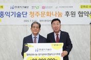 [인천광역신문] 관리자 기자 | 청주시문화산업진흥재단은 2일 오후 청주시청 임시청사 직지실에서 ㈜홍익기술단(대표이사 성낙전)과 청주문화나눔 후원식을 진행했다. 행사에는 이범석 청주시장, 성낙전 ㈜홍익기술단 대표이사가 참석했으며, 이 자리에서 ㈜홍익기술단은 지역문화예술 발전과 청주공예비엔날레 성공 개최를 위해 2천만원을 쾌척했다. ㈜홍익기술단이 청주문화나눔에 동참하는 건 이번이 3년째다. 성낙전 대표는 “끊임없이 변화하는 기업만이 더 나은 세상을 만들 수 있다”며 “이윤을 넘어 문화와 예술의 힘으로 변화를 선도하고 홍익의 가치를 더욱 높이는 기업이 되도록 지속적으로 노력하겠다”고 말했다. 이범석 시장은 “홍익기술단의 꾸준한 문화나눔 동참 덕분에 통합 11주년을 맞은 올해 청주시민의 일상에 더 큰 문화와 예술의 힘이 스밀 수 있게 됐다”며 “청주공예비엔날레 성공개최와 ‘100만 자족도시, 글로벌 명품도시’ 청주를 만드는 데 큰 동력이 될 것”이라고 감사를 표했다. 3년 연속 청주문화나눔에 마음을 보태며 누적 후원금 5천만원 이상을 기부한 ㈜홍익기술단은 청주에 본사를 둔 30여년 역사의 종합