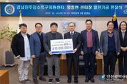 [인천광역신문] 관리자 기자 | 경상국립대학교 해양과학대학 기계시스템공학과 양정현 교수가 대학 발전기금 1000만 원을 기부했다. 발전기금 전달식은 11월 18일 오전 대학본부 3층 접견실에서 권진회 총장, 오재신 국제처장, 김경수 국제협력부처장, 황정숙 국제협력과장과 양정현 교수 등 대학 관계자 10여 명이 참석한 가운데 열렸다. 양정현 교수는 2015년 3월 경상국립대학교 기계시스템공학과에 부임한 이후, 해양과학도서관 분관장, 기술비즈니스센터장을 역임했다. 현재는 경남진주강소특구지원센터장, 연구산학처 산학부처장, 창업지원단 부단장, 창업보육센터장 등 주요 보직을 맡아 지역 산업과 대학의 상생 발전에 기여하고 있다. 양정현 교수는 (사)한국마린엔지니어링학회 우수발표상, 우수논문상, (사)한국표면공학회 신진표면공학자상 등을 수상하며 학문적 성과와 연구 역량도 인정받고 있다. 올해는 양정현 교수가 경상국립대학교 부임 10주년을 맞이한 뜻깊은 해이다. 양정현 교수는 이번 1000만 원 기부를 포함해 지금까지 1133만 원의 발전기금을 출연하여 대학 발전을 위한 꾸준한 나눔을 이