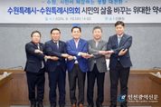 [인천광역신문] 관리자 기자 | 수원시 여야가 “민생안정을 위한 시민체감 숙원사업을 추진하겠다”고 공동선언을 했다. 이재준 수원시장, 수원시의회 이재식 의장, 김정렬 부의장, 김동은 더불어민주당 교섭단체 대표, 박현수 국민의힘 교섭단체 대표는 10일 시청 상황실에서 여야 공동선언을 하고, 협력을 약속했다. 수원시 여야가 뜻을 모아 추진하는 시민체감 숙원사업은 ▲출산지원금 확대 ▲청소년 생리용품 지원 ▲무상교통 ▲대상포진 무료접종 등 시민들에게 실질적으로 도움이 되는 것들이다. 10월 조례안 의결, 예산 편성 후 내년 시행 예정 10월 임시회에서 조례안을 의결하고, 11월 정례회에서 예산을 편성한 후 내년에 시행할 계획이다. ‘무상교통’은 70세 이상 어르신 등이 무료로 대중교통을 이용할 수 있도록 교통비를 지원하는 사업이고, ‘청소년 생리용품 지원’은 11~18세 여성 청소년에게 생리용품을 지원하는 것이다. ‘출산지원금 확대’는 첫째 아이 출산지원금(50만 원)을 신설하고, 둘째 아이 출산지원금은 기존 50만 원에서 100만 원으로 상향하는 것이다. ‘대상포진 무료 예방접종’은 65세