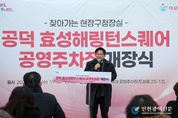[인천광역신문] 관리자 기자 | 박강수 마포구청장은 12월 3일 오후 5시, 공덕역 10번 출구 앞 광장에서 열린 ‘공덕 효성해링턴스퀘어 공영주차장 개장식’에 참석해 시설 개장을 축하했다. 이번에 문을 연 공덕 효성해링턴 스퀘어 공영주차장(도화동 25-13)은 총 21면 규모로 조성된 거주자우선주차장으로, 구는 공공기여를 통해 확보한 이 공간을 주민들에게 개방해 운영하기로 했다. 아파트와 상가, 오피스가 밀집한 도화동·공덕동 일대는 주차 수요에 비해 공간이 부족해 주민과 방문객 모두가 지속적인 불편을 겪어 왔다. 이번 공영주차장 운영을 통해 지역에서 꾸준히 제기돼 온 주차 불편이 상당 부분 해소될 것으로 기대되며, 생활권 내 주차 편의도 한층 개선될 전망이다. 행사는 식전 공연을 시작으로 개회 및 내빈소개, 경과보고에 이어 박강수 마포구청장의 기념사가 진행됐으며, 이어 테이프 커팅과 기념촬영 후 시설 라운딩이 이어졌다. 추운 날씨 속에서도 박강수 마포구청장을 비롯해 백남환 구의회 의장, 지역 주민 등 약 100여 명이 참석해 주차 공간 확충의 성과를 함께 축하했다. 박강