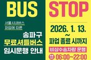[인천광역신문] 박진 기자 | 송파구는 서울시버스노동조합이 오는 13일부터 총파업 돌입을 예고함에 따라 구민들의 교통 불편 최소화를 위해 무료 셔틀버스를 투입하는 등 '비상수송대책'을 가동한다고 밝혔다. 구는 예고된 서울 시내버스 파업에 선제적으로 대비하기 위해 '비상수송대책본부'를 구성하고 상황실을 설치해 파업 종료 시까지 상황별 대응체계를 운영한다. 이에 따라 구 직원 52명이 매일 2교대로 근무하며 비상수송대책을 수행할 예정이다. 특히, 구는 13일 오전 6시부터 무료 셔틀버스(45인승 이상) 44대를 선제적으로 마련해 대중교통 접근성 취약 지역과 주요 지하철역을 연계하는 버스를 투입하여 구민 불편을 최소화할 계획이다. 무료셔틀버스는 총 9개 노선에 44대의 무료셔틀버스를 1일 총 324회 운행한다. 출퇴근시간에 집중 배차하여 이용 편의성을 높였다. 운행 노선은 ▲임시1번(천호역~풍납동~천호역) ▲임시2번(종합운동장역~잠실새내역~잠실7동~종합운동장역) ▲임시3번(잠실역~석촌역~삼전역~잠실역) ▲임시4번(가락시장역~오금역~경찰병원역~가락시장역) ▲임시5번(문정역~개롱역~오금동사거리~문정역) ▲임시6번(위례동