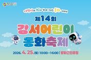 [인천광역신문] 최예준 기자 | 서울 강서구는 오는 25일 방화근린공원(강서구 금낭화로 178)에서 ‘제14회 강서어린이 동화축제’를 개최한다고 밝혔다. 올해 축제는 ‘어린이와 AI가 함께 그리는 동화 이야기’라는 주제로 기획됐다. 인공지능 시대에도 변하지 않는 독서의 즐거움을 전하기 위해 책과 인공지능을 연계한 다양한 프로그램을 선보일 예정이다. 먼저 오전 10시부터 방화동 일대에서 축제의 시작을 알리는 화려한 퍼레이드가 진행된다. 퍼레이드는 서울디지털콘텐츠고등학교에서 방화근린공원까지 약 1.2㎞ 구간을 따라 펼쳐진다. ‘호두까기 인형’, ‘이상한 나라의 앨리스’, ‘미운 아기 오리’ 등 동화 속 등장인물로 분장한 어린이들이 퍼레이드에 참여해 환상적인 볼거리를 선사한다. 특히 올해는 생성형 인공지능으로 구현한 동화 영상이 송출되는 LED 차량이 퍼레이드에 합류해 특별한 재미를 더할 예정이다. 퍼레이드에 이어 오전 11시에는 방화근린공원 메인 무대에서 개막식이 열린다. 동화 속 세계로 들어간다는 의미를 담아, 로봇 강아지가 ‘황금열쇠’를 전달하는 특별 퍼포먼스도 진행된다.