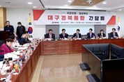 [인천광역신문] 박진 기자 | 경상북도와 국민의힘(경북도당위원장 구자근)은 26일 국회의원회관에서 대구경북통합 간담회를 열고 지역 국회의원의 다양한 의견을 수렴하고 국회와의 협력방안을 논의했다. 이날 간담회에는 이철우 경북도지사와 국민의힘 구자근 경북도당 위원장, 경북지역 국회의원과 경상북도 주요 간부들이 참석했다. 이철우 경북도지사는 인사말에서“경북은 2019년부터 전국에서 가장 먼저, 가장 적극적으로 통합 논의를 시작해왔다. 정부가 광역 통합 시 행정·재정·제도적 지원을 책임지겠다고 한 만큼 지금이 통합의 적기이다.”면서 “경북의 특별법안은 충남·대전, 광주·전남이 상당수 참고할 정도로 이미 준비되어 있다. 국회에서 대구경북통합에 대해 많은 관심을 갖고 적극적으로 지원해 주길 당부드린다.”고 말했다. 구자근 도당위원장은“행정통합은 대구경북의 미래에 관한 중요한 사항”이라면서 “성장동력 약화, 수도권 집중 등으로 통합은 이미 시대적 흐름이다. 시도민의 삶에 큰 변화를 불러오는 만큼 타이밍과 속도가 중요하다. 꼼꼼하게 점검하고 지역의 목소리를 대변하겠다.”고 언급했다. 이어 송언석 국민의힘 원내대표