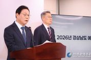 [인천광역신문] 관리자 기자 | 경상남도는 13일 오전 도청 프레스센터에서 열린 브리핑을 열고, 2026년도 예산안을 전년 대비 1조 8,118억 원(14.5%) 늘어난 14조 2,845억 원으로 확정했다고 발표했다. 이날 박완수 도지사는 “2026년도 예산안은 재난·재해 등 위기 대응 능력을 강화하고, 도민행복시대 시책을 안정적으로 추진하며, 미래성장 기반을 다지는 데 중점을 뒀다”고 밝혔다. 이어 “현장에서 만난 도민의 다양한 목소리를 반영한 체감형 사업에 예산을 우선 배분했다”며 “14조 원 규모의 예산이 도민의 행복과 지역경제 활력의 마중물이 될 것”이라고 강조했다. 박 지사는 또 “부동산 시장 불안 등으로 자체 세입은 제자리걸음 수준이지만, 정부예산안에 반영된 국비가 11조 원을 돌파하면서 국고보조금이 대폭 증가했다”고 설명했다. 세입예산은 △국고보조금 8조 4,324억 원(59.0%), △지방세 수입 3조 8,050억 원(26.6%), △지방교부세 1조 801억 원(7.6%) 등으로 구성됐으며, 국고보조금이 절반 이상을 차지한다. 경남도는 혁신적 예산편성을 위해 ‘예산편성점검단’을 운영,