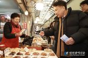 [인천광역신문] 관리자 기자 | 김영환 도지사는 2월 12일 설 명절을 앞두고 청주 사창시장을 방문해 전통시장 장보기에 참여하며, 지역경제 현장 소통 행보에 나섰다. 이날 김지사는 시장 곳곳을 둘러보며 지역 농·축산물, 제수용품 등 명절 성수품을 직접 구매하고, 고물가와 소비패턴 변화 등 어려움 속에서도 전통시장을 묵묵히 지키고 있는 상인들을 격려하며, 애로사항을 경청했다. 한편, 설 명절을 맞아 충북도는 11개 시·군과 함께 전통시장 활력 제고 및 지역경제 상생 활동의 일환으로 설맞이 직원 장보기 행사를 적극 추진중에 있다. 김영환 도지사는 “전통시장은 단순한 거래 공간을 넘어 지역민의 삶과 문화가 살아 숨 쉬는 현장”이라며, “도민 여러분께서도 따뜻한 정이 넘치는 전통시장에 방문하여 활기를 불어넣어 주시고, 가족과 함께 풍요로운 설 명절 보내시길 바란다”고 말했다. [뉴스출처 : 충청북도]