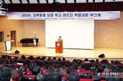 [인천광역신문] 최예준 기자 | 충청북도교육청은 6일, 교육연구정보원에서 유‧초‧중‧고‧특수‧각종학교 교(원)감 500여 명을 대상으로 '2026년 교육활동 보호 학교관리자 워크숍'을 운영했다. 이번 워크숍은 교육공동체 간 갈등을 조정하고 교원이 안심하고 교육활동에 전념할 수 있는 여건을 조성하기 위해 마련됐다. 워크숍에서는 ▲교육활동보호센터 운영 사업 안내 ▲학교민원 이해와 관리자 리더십 역량 강화 특강 ▲학교안전공제회와 연계한 교원보호공제사업 안내 등을 중심으로 학교 현장에서 바로 적용할 수 있는 실무 중심 내용이 다뤄졌다. 특강은 김민태(인권정책연구소 선임정책연구원) 강사가 맡아 '교육활동 보호를 위한 관리자의 역할과 리더십'을 주제로 진행한다. 최근 개정된 교육활동 보호 관련 법령과 지침을 반영해 학교민원 대응과 교육활동 보호 강화를 위한 사례별 법률 해석, 민원 유형별 처리 방법 등 실질적인 대응 역량을 높이는 데 중점을 뒀다. 8일(수)에는 동일한 내용으로 유‧초‧중‧고‧특수‧각종학교 교(원)장 대상 워크숍을 운영하며, 중동발 에너지 위기에 따른 공공기관 차량 2부제 등 에너지 수요 관리