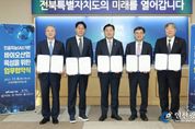 [인천광역신문] 관리자 기자 | 전북특별자치도가 인공지능과 바이오산업을 융합한 지역 신성장 동력 확보에 나섰다. 도는 6일 도청에서 한국기계전기전자시험연구원, 범부처통합헬스케어협회, 전북대학교, 원광대학교 등 5개 기관과 'AI 기반 바이오 산업 육성'을 위한 업무협약을 체결했다. 이날 협약식에는 김관영 도지사를 비롯해 안성일 한국기계전기전자시험연구원장, 심기준 범부처통합헬스케어협회장, 양오봉 전북대 총장, 박성태 원광대 총장이 참석했다. 이번 협약을 통해 참여 기관들은 ▲AI 기반 바이오 산업 생태계 조성을 위한 사업 발굴과 공동 추진 ▲AI 기술을 활용한 연구·산업 기반 구축 ▲산·학·연 협력을 통한 전문인력 양성 및 산업화 지원 등의 협력 체계를 구축해 나갈 계획이다. AI 기반 바이오 산업의 신뢰성과 안전성, 사이버보안 지원체계 구축에도 힘을 쏟는다. 도는 이번 협약을 계기로 AI와 바이오산업이 융합된 지능형 바이오 생태계를 조성해 지역 경제의 미래 먹거리로 발전시킨다는 방침이다. 한국기계전기전자시험연구원은 기계·전기·전자·의료 등 전 분야 시험인증 전문기관으로 약 700명의 인력을 보유하고