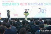 [인천광역신문] 관리자 기자 | 제주산 한우와 돼지고기가 1일 싱가포르 첫 수출길에 올랐다. 11월 2일 한국-싱가포르 정상회담에서 수출을 공식 합의한 지 한 달 만이다. 제주특별자치도는 농림축산식품부, 식품의약품안전처와 공동으로 이날 오후 2시 제주항에서 제주산 한우‧돼지고기의 첫 싱가포르 수출을 기념하는 선적식을 개최했다. 선적식에는 오영훈 제주도지사, 박정훈 농식품부 식량정책실장, 송성옥 광주식약청장을 비롯해 수출업체, 생산자단체 등 150여 명이 참석한 가운데 추진 성과를 공유하고 유공자에게 표창장을 수여했다. 특히, 수출 차량 앞에서 진행된 제막 행사에서는 세계시장으로 판로를 개척하겠다는 비전도 발표했다. 싱가포르 수출작업장은 제주축협(도축장), 서귀포시축협(가공장), 제주양돈농협(도축장,가공장), 대한에프엔비(가공장), 몬트락(가공장) 6곳이며, 초도 수출물량은 한우·돼지고기 4.5톤, 약 2억 8,000만 원 규모다. 이번 수출은 제주산 한우·돼지고기의 안전성을 축산물 수입 기준이 엄격한 싱가포르가 인정한 것으로, 지난 수년간 중앙부처, 지방정부, 제주 축산업계가 긴밀히 협력해 축산물
