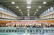 [인천광역신문] 관리자 기자 | 강원특별자치도는 2월 24일 원주에서 김진태 도지사와 김시성 도의회 의장을 비롯한 도의원, 관계기관장, 의용소방대원 등 800여 명이 참석한 가운데 전국에서 두 번째 사례로 '강원특별자치도 의용소방대 산불진화대 발대식'을 개최했다고 밝혔다. 강원은 전체 면적의 약 81%가 산림으로 구성된 지역적 특성상 산불이 곧 도민의 생명과 재산, 산림자원에 직결되는 중대한 재난으로 이어질 가능성이 높다. 이에 도는 의용소방대를 중심으로‘산불진화대’를 별도 편성하여, 봄·가을철 산불조심기간 동안 예방 중심의 활동을 강화하고, 산불 발생 시 신속한 초기 대응 및 확산 방지 지원체계를 구축한다. 도내 18개 소방서 소속 720명으로 구성된 산불진화대의 주요 역할은 ▲ 산림 인접 마을 및 취약지역 순찰·예방 홍보 ▲ 비상소화장치 점검 및 예비주수 활동 ▲ 산불 발생 시 초기 진화 및 방화선 구축 보조 ▲ 주거지·문화재 등 보호대상 방어 활동 지원 ▲ 현장 통제 및 주민 대피 지원 등으로 초기 진화 역량을 현장에서 즉각 가동하는 데 중점을 둔다. 도는 실질적인 대응 역량 강화를 위해 전문