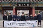 [인천광역신문] 박진 기자 | 광주 서구의회가 7일 국립 5․18 민주묘지를 방문해 참배하고 묘역 주변에서 환경정화활동을 실시했다. 이번 참배는 5․18 민주화 운동의 숭고한 정신을 기리며 민주영령과 순국선열에 대한 경의를 표하기 위해 마련됐으며, 참배 후 서구의회는 묘역 주변에서 환경정화활동을 통해 민주 영령의 뜻을 기리고 민주주의를 위한 헌신을 되새기는 시간을 가졌다. 전승일 의장은“46년전 5월, 민주영령들은 민주주의를 수호하기 위해 목숨을 걸고 전남도청으로 향했다.”며, “그들의 고귀한 희생이 지금도 우리 곁에서 민주주의의 소중함을 일깨워주는 만큼 5월의 민주영령들 처럼 민주주의를 지키고 발전시키는 데 앞장서며 지속적인 의정활동을 이어가겠다.”고 말했다. [뉴스출처 : 광주광역시 서구의회]