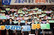 [인천광역신문] 관리자 기자 | 광주광역시는 12일 전남 고흥문화회관에서 ‘광주전남 행정통합 고흥군 상생토크’를 열고, 고흥군 발전 전략과 통합 이후 변화상에 대해 고흥군민들과 소통했다. 이번 행사는 여섯번째 열린 상생토크로, 통합 이후 고흥의 우주·해양·농어촌 자원을 활용해 광주·전남 균형발전을 이루기 위해 마련했다. 이날 행사에는 강기정 광주시장을 비롯해 공영민 고흥군수, 류제동 고흥군의회 의장, 고흥군민 등 600여 명이 참석해 광주전남 통합에 대한 높은 관심을 보였다. 강기정 시장은 먼저 광주전남 통합 추진상황과 향후 일정, 통합에 대한 정부 특전(인센티브) 등을 설명하며 통합 의지를 밝혔다. 강 시장은 이어 고흥군과 관련된 특별법안 특례조항으로 ▲광역생활권 지정과 교통복지 ▲항공우주 산업 육성 ▲문화관광 기반시설(인프라) 구축 지원 등을 소개했다. 특히 고흥을 비롯한 위기산업지역인 전남 동부권에 재정을 우선적으로 투입해 일자리를 지키고 광주·전남 균형발전을 이끌겠다는 구상을 발표했다. 이날 상생토크에서 공영민 고흥군수는 ▲안정적인 농어촌 재정 지원 ▲우주항공산업 육
