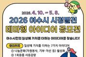 [인천광역신문] 최예준 기자 | 여수시는 시민들의 참신하고 창의적인 의견을 정책에 반영해 ‘시민이 참여하는 시정’을 실현하고자 오는 4월 10일부터 5월 8일까지 ‘2026년 여수시 시정발전 테마형 아이디어 공모전’을 실시한다고 밝혔다. 이번 공모전은 ‘일상에 가치를 더하는 7가지 아이디어’라는 주제로, 시민 생활과 밀접한 현안들에 대한 해결 방안을 발굴하기 위해 마련됐다. 공모 분야는 시민 삶의 질을 높일 수 있는 7개 분야로 ▲나눔문화(자원봉사, 기부 등) 활성화 ▲1회용품 사용감량 ▲불법 옥외광고물 정비 및 활용 ▲자전거 이용 활성화 ▲지역사회 청소년 참여 및 활동 ▲독서문화진흥 및 도서관 특성화 ▲문화접근성 확대 등이다. 여수 시민이라면 누구나 참여할 수 있으며, 접수된 제안은 실시가능성, 창의성, 효과성 등 7개 심사항목에 대한 심의를 거쳐 7월 중 최종 선정된다. 우수 제안자에게는 ▲최우수(40만 원) ▲우수(20만 원) ▲장려(10만 원) 상당의 여수사랑상품권이 지급된다. 참여를 원하는 시민은 여수시 누리집 고시공고에서 제출서류를 확인한 뒤 국민생각함(국민신문고 및 누리집)