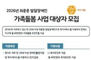 [인천광역신문] 관리자 기자 | 경기도가 2026년 최중증 발달장애인 가족돌봄 사업 대상자 145가구를 12월 2일까지 모집한다. 최중증 발달장애인이란 도전적 행동이 심하고 일상생활에 제약을 지닌 통합돌봄이 필요한 발달장애인이다. 경기도는 돌봄이 필요한 모든 도민들을 대상으로 누구나, 언제나, 어디나 빈틈없는 돌봄을 제공하는 360도 돌봄사업을 하고 있다. 최중증 발달장애인 가족돌봄 사업은 이 가운데 ‘어디나 돌봄’ 사업의 하나로 진행한다. 2024년 4월 처음 가족돌봄 사업을 시행한 이래 매달 210가구에 월 40만 원씩 돌봄포인트를 제공해 생필품 구입부터 여가활동 지원까지 다양한 부분에서 사용하여 장애인 당사자와 가족의 생활안정에 기여하고 있다. 2026년 최중증 발달장애인 가족돌봄 사업의 지원 대상은 경기도에서 거주하는 복지관, 직업재활서비스 등 복지서비스 미이용으로 돌봄사각지대에 놓인 만 18세 이상 발달장애인이다. 선정 시 월 40만 원 가족돌봄포인트를 1년간 지원하고 지속적인 모니터링으로 복지서비스와 대상자를 연계하는 서비스를 제공한다. 2026년 모집인원은 145명으로 전년과 다르게 모