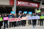 [인천광역신문] 관리자 기자 | 용인특례시는 1일 서울 잠실에서 용인시 처인구를 관통하고 청주공항까지 이어지는 중부권 광역급행철도의 (JTX) 민자적격성 조사 신속 통과와 조기 착공 필요성을 강조하기 위한 범시민 서명운동을 시작했다. 시는 오는 31일까지 한 달간 용인 시민과 대한민국 국민 전체를 대상으로 ‘JTX 조기 착공 서명운동’을 펼치기로 하고, 1일 용인FC 개막전이 열리는 용인미르스타디움에 홍보 부스를 운영했다. 이상일 시장도 이날 아내 김미영 여사와 함께 홍보부스를 찾아 서명했다. 시는 5만 명 이상의 서명 확보를 목표로 온오프라인 서명운동을 전개할 계획이다. 용인특례시는 각 읍면동 행정복지센터 민원실에 서명부를 두고 주민 서명을 받는다. 이와 관련해 시는 선거관리위원회의 사전 검토를 받았다. 시민의 온라인 참여는 시 누리집이나 사회관계망서비스(SNS), 홍보물에 포함된 큐알(QR)코드 등으로 참여할 수 있다. 시는 노선상 JTX가 연결되는 다른 도시들과도 협조 체계를 가동한다. 청주ㆍ안성시와 진천군도 서명운동을 펼칠 예정이다. 용인특례