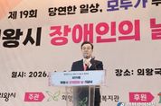 [인천광역신문] 최예준 기자 | 화성특례시의회는 20일 화성시종합경기타운 앞마당 일원에서 열린 '2026년 화성특례시 장애인의 날 기념 걷기축제 『아름다운 동행, 함께 걷는 봄길』'에 참석해 장애인과 비장애인이 함께하는 사회통합의 의미를 되새겼다. 이날 행사에는 배정수 의장을 장철규 기획행정위원장, 이계철 도시건설위원장, 송선영·이용운 의원이 참석했으며, 장애인과 비장애인 시민 900여 명이 함께해 행사의 의미를 더했다. 이번 걷기축제는 함께 걷고 완주하는 과정의 가치를 나누며 장애에 대한 인식을 넓히기 위해 마련됐으며, 참가자들은 4인 1조로 각자 1,050m를 걸어 총 4,200m를 완성하는 방식으로 장애인의 날 의미를 되새겼다. 배정수 의장은 “오늘 행사는 누가 앞서가는지가 아니라 서로의 보폭을 살피며 같은 방향으로 걸어가는 일이 더 중요하다는 사실을 보여주는 자리”라며 “장애에 대한 이해와 존중은 기념일 하루의 의미를 넘어, 함께 살아가는 일상 속에서 실천될 때 비로소 완성된다”고 말했다. 이어 “화성특례시의회도 누구를 따로 배려하는 도시를 넘어 함께 살아가는 것이 자연스러운 도시, 서로의