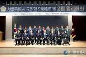 [인천광역신문] 관리자 기자 | 동작구의회는 25일 동작구 신청사 4층 대강당에서 ‘서울특별시 구의회 의장협의회 2월 월례회의’를 개최했다. 서울특별시 구의회 의장협의회는 서울시 25개 자치구의회 의장으로 구성된 협의체로, 지방의회 운영에 관한 상호 교류와 협력 증진을 위해 매달 한 차례씩 자치구별로 순회 개최하고 있다. 이날 회의에는 서울시 20개 구의회 의장이 참석한 가운데, 의장협의회 조동탁 회장의 개회사를 시작으로 동작구의회 정재천 의장의 환영사에 이어 감사패 전달, 지방의정대상 시상 및 유공 공무원 표창 순으로 진행됐다. 동작구의회 정재천 의장은 “충효의 고장 동작구에 서울시 구의회 의장 여러분을 모시게 되어 기쁘게 생각한다”며 “오늘 자리를 통해 지방의회의 역할과 책임을 강화하는 계기가 되기를 바란다”고 말했다. 의정대상은 동작구의회 변종득(흑석동·사당1·2동), 김효숙(상도2·4동), 장순욱(신대방1·2동), 신민희(상도1동·사당5동), 이영주 의원(비례대표)이 수상하며 그간 지방의정 발전에 기여한 공로를 인정받았다. 한편, 이후 진행된 안건보고 및 심도 있는 토의에서 의